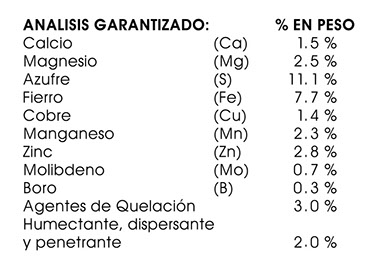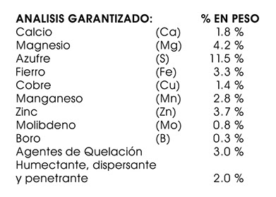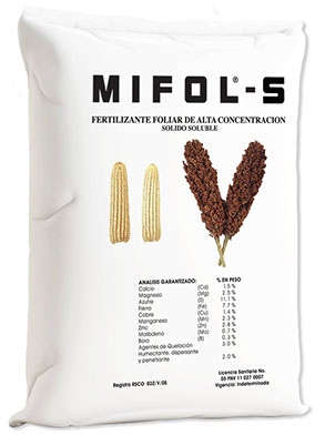 MIFOL-S es una fórmula equilibrada de elementos menores y micronutrientes, que requieren los cultivos en momentos críticos de su vida vegetativa, crecimiento, floración y formación de frutos o semillas.